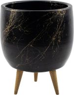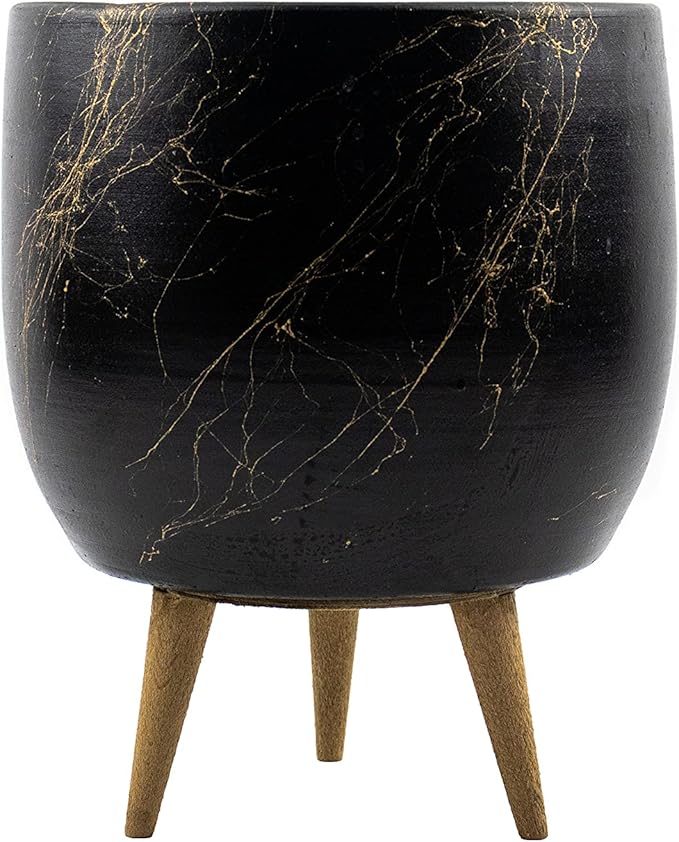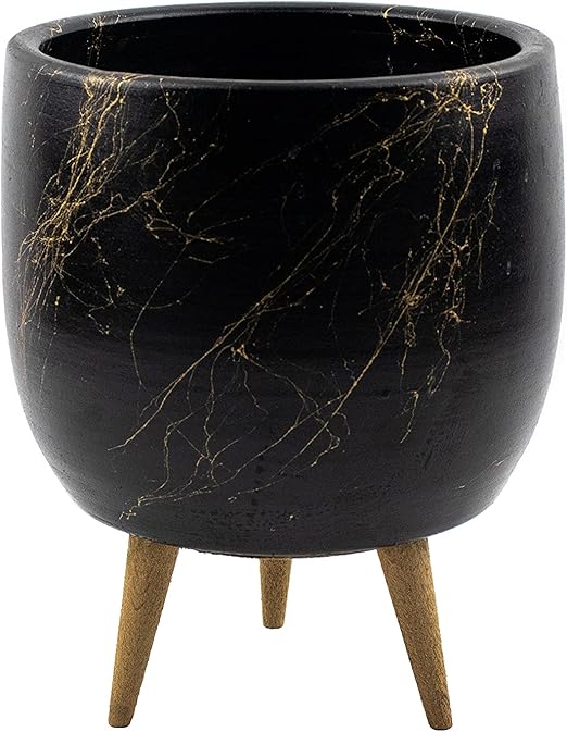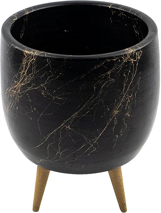 Tasarımı Ev Dekorasyon Aksesuar Siyah Üzeri Gold Mermer Efektli Toprak Saksı Saksılık Salon Çiçeklik 3 Ayaklı – 19 CM