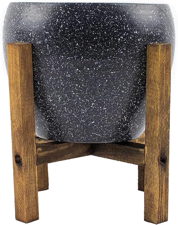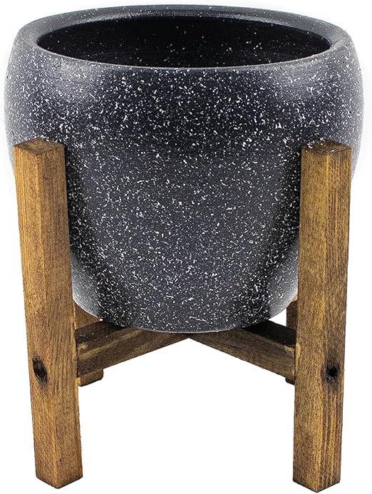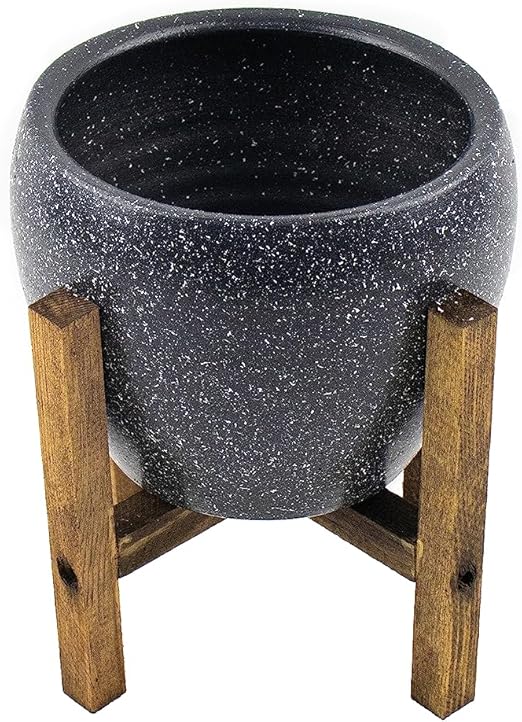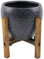Tasarımı Ev Dekorasyon Gri Granit Toprak Saksı Saksılık Salon Çiçeklik 4 Ayaklı – 15 Cm