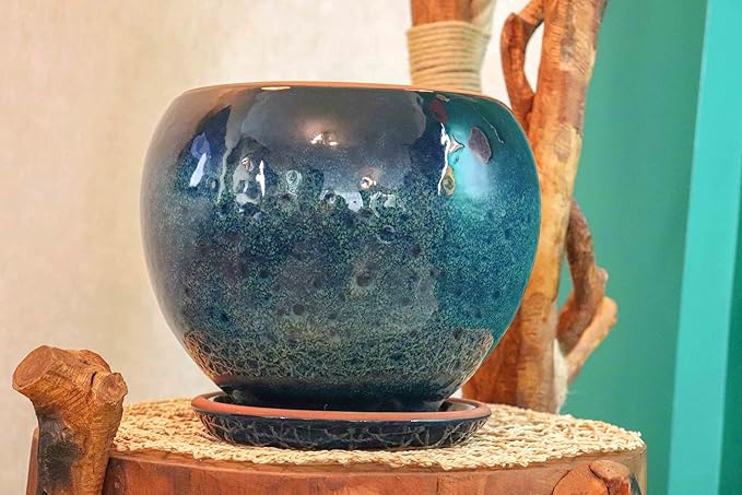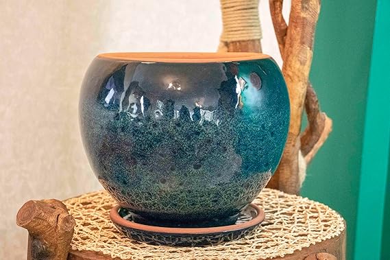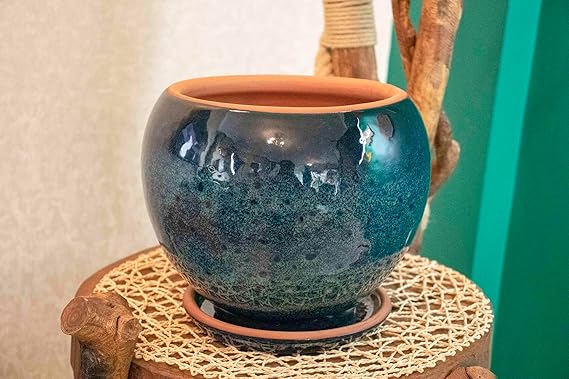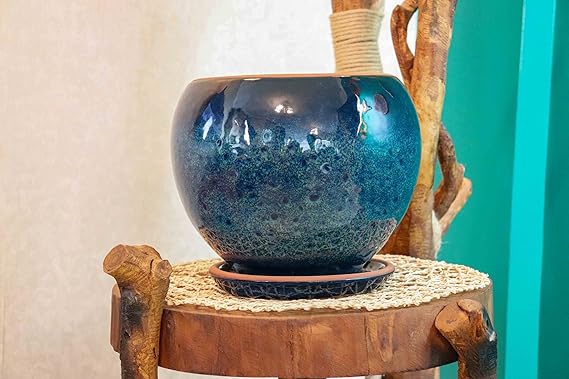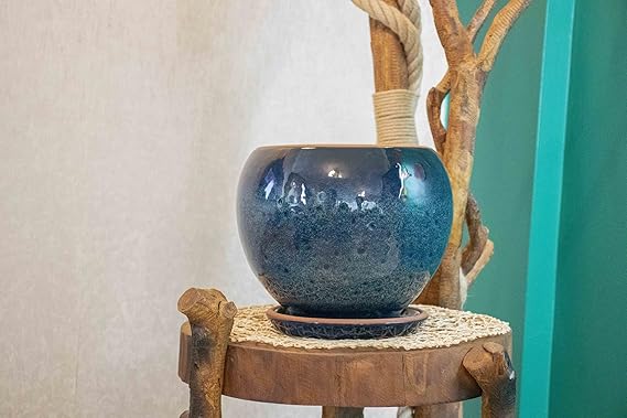 Tasarımı Ev Dekorasyon Okyanus Mavisi Artistik Çift Sırlı İç Ve Dış Mekan Kullanımlı Tabaklı Toprak Terrakota Saksı Saksılık Salon Çiçeklik