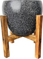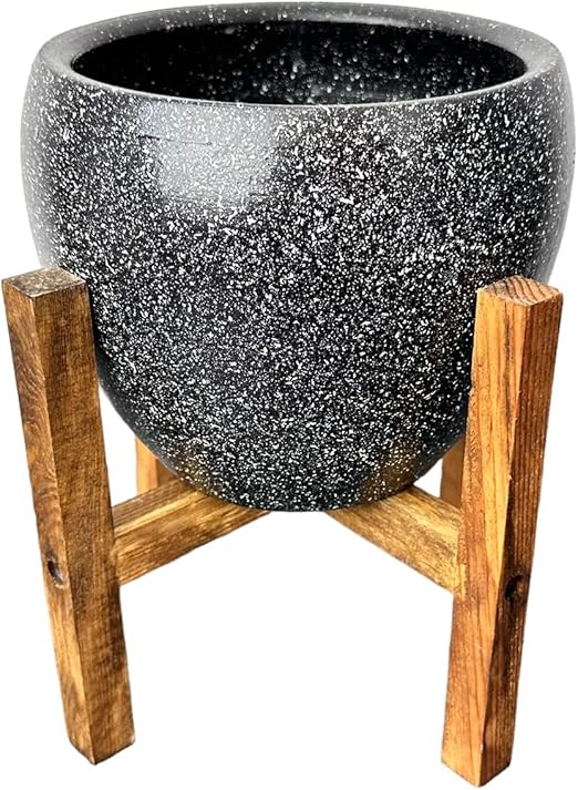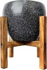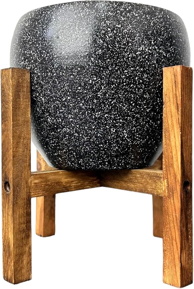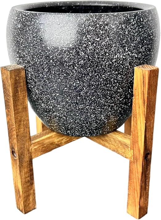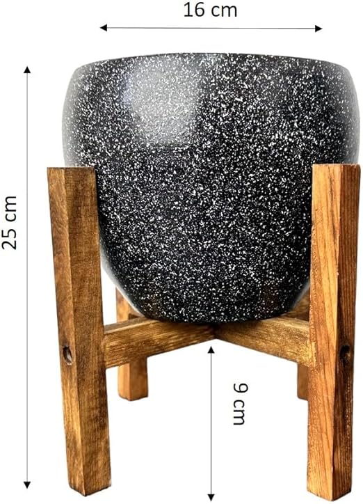 Tasarımı Ev Dekorasyon Siyah Granit Toprak Saksı Saksılık Salon Çiçeklik 4 Ayaklı – 15 Cm