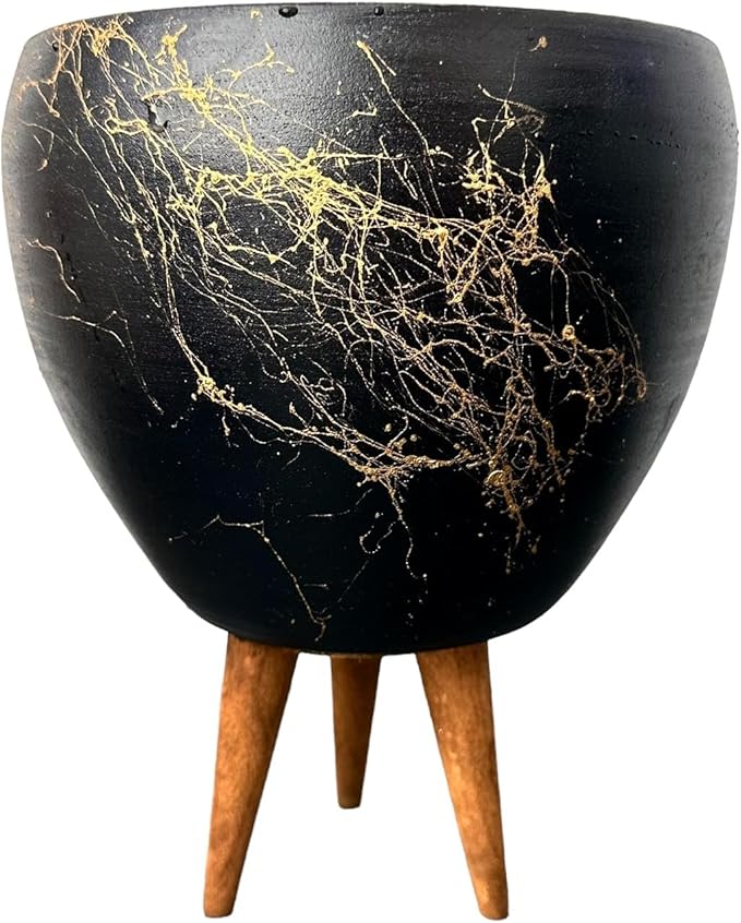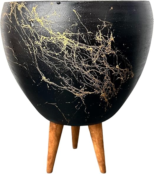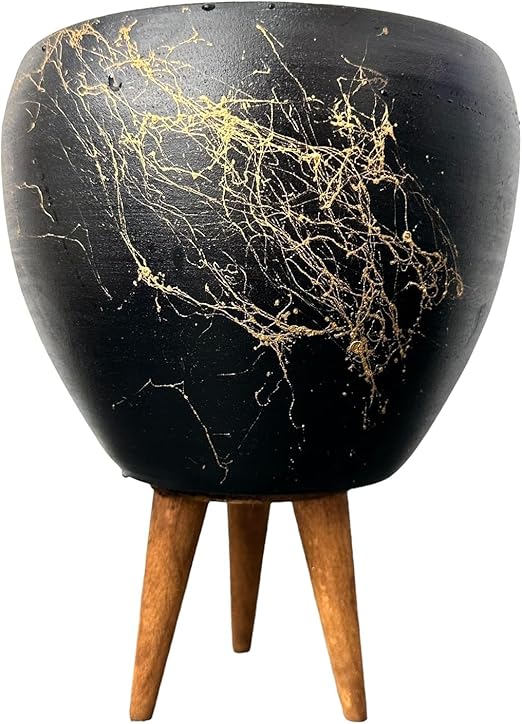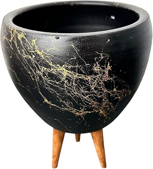 Tasarımı Ev Dekorasyon Siyah Üzeri Gold Mermer Efektli Toprak Saksı Saksılık Salon Çiçeklik 3 Ayaklı – 15 Cm