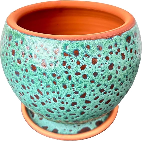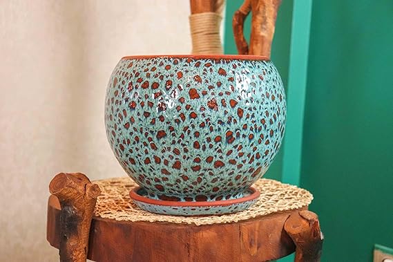 Tasarımı Ev Dekorasyon Turkuaz Şekilli Artistik Çift Sırlı İç Ve Dış Mekan Kullanımlı Tabaklı Toprak Terrakota Saksı Saksılık Salon Çiçeklik