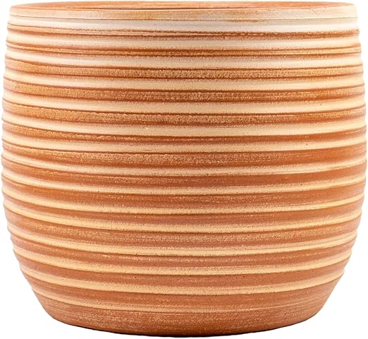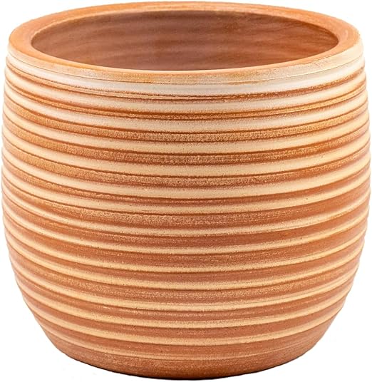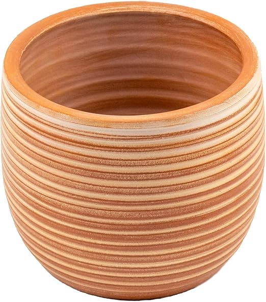 Tasarımı Ev Dekorasyon Yan Çizgi Desenli Terrakota Toprak Saksı Saksılık Salon Çiçeklik – 15 Cm