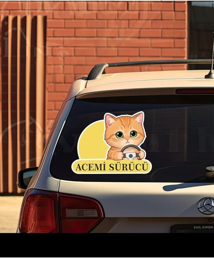 Tasarla Acemi Sürücü Sevimli Kedi Araba Etiketi & Sticker Çok Renkli