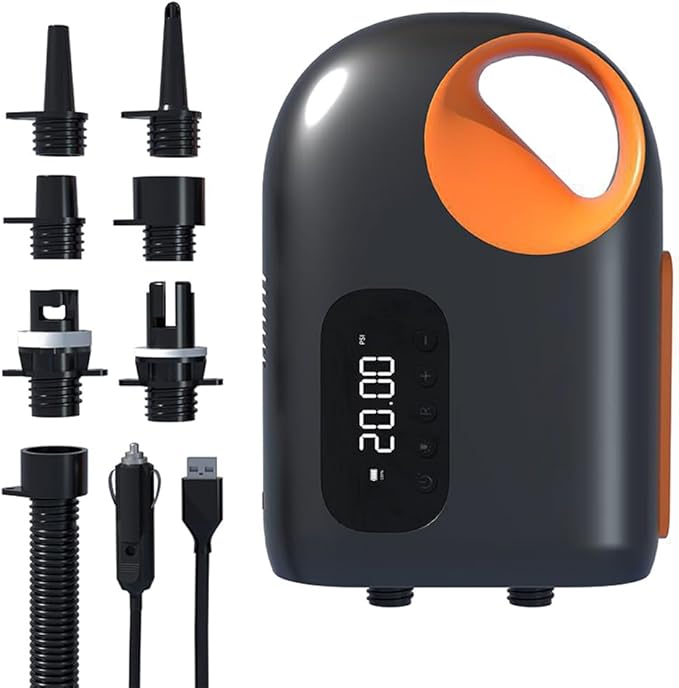 Taşınabil Kürek d Pompası 20PSI Yüksek Basınçlı Elektrikli A Kompresör Pompası Işıkla Şişirme ve Söndürmeyi Destekler Şişme Bot Havuzu Sörf Tahtası için 6 Nozul Siyah ve Turuncu Kablolu