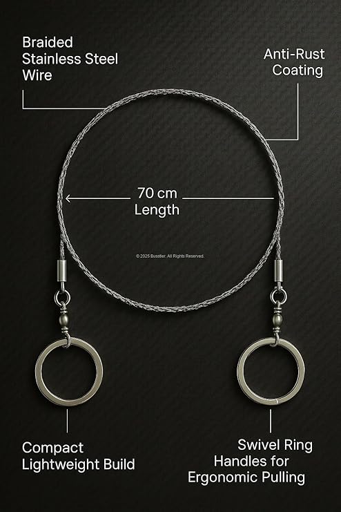 Taşınabilir Çelik Tel Testere, Kamp, Doğa Yürüyüşü, Hayatta Kalma Testere, 70 cm, Paslanmaz, Yüksek Dayanıklı, Acil Durum Kesici, El Aleti, Kompakt, Hafif, Seyahat Tipi İp Testere