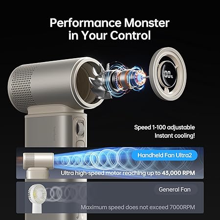 100 Hız Kasırgası: Taşınabilir fan, güçlü 1-100 ayarlanabilir rüzgar hızına, 43000 RPM ultra motora, maksimum rüzgar hızına 17 m/s’ye ulaşır. 3 saniye boyunca 100 hıza basın ve basılı tutun, Fırtına Modunu etkinleştirin! Orijinal hızı geri yüklemek için bırakın. Kullanımı kolay, kaydırma tekerleği ile ayarlanan bu kişisel fan, ihtiyaçlarınıza göre uyarlanmış soğutma için özelleştirilebilir.