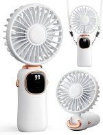 Taşınabilir el vantilatörü, 4000mAh pille çalışan 3’ü 1 arada çok işlevli kişisel seyahat fanı, dijital ekranlı 90° katlanabilir masa vantilatörü, makyaj/ofis için 5 hızlı kirpik fanı (beyaz)