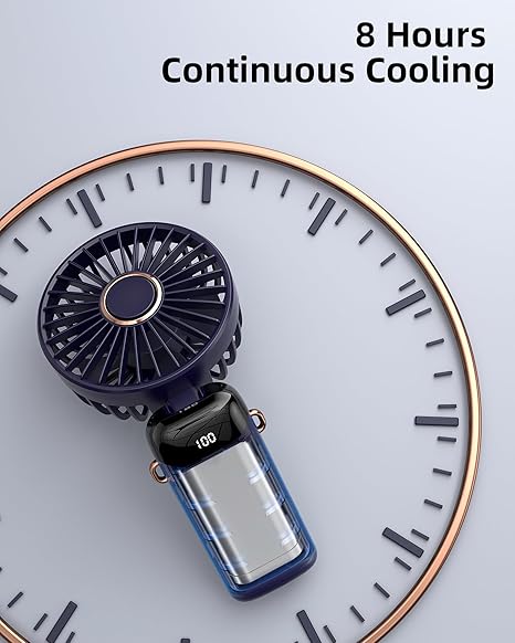 8 Saat Sürekli Soğutma: Küçük taşınabilir fan, 3,5 ila 8 saat kesintisiz soğutma sağlar. Bu cep vantilatörü plaj günleri, eğlence parkı ziyaretleri ve seyahat gibi açık hava etkinlikleri için mükemmel bir arkadaştır.