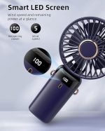 Akıllı Dijital Ekran: Şarj edilebilir mini fan, kalan pil ömrünü ve hız seviyesini rahatça gösteren akıllı bir dijital ekranla donatılmıştır. Bu kullanıcı dostu özellik, fanı zahmetsizce ideal rüzgar hızına ayarlamanıza ve şarj zamanı geldiğinde haberdar olmanıza olanak tanır.