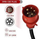 Taşınabilir EV Şarj Cihazı 22KW 32A 3 Fazlı 5 PİM CEE 5M Elektrikli Araç Şarj Cihazı Tip-2 Güç Kablosu EV Şarj İstasyonu Duvar Braketi ve Ev Güç Adaptörü Kablosu ve Çanta (Siyah)