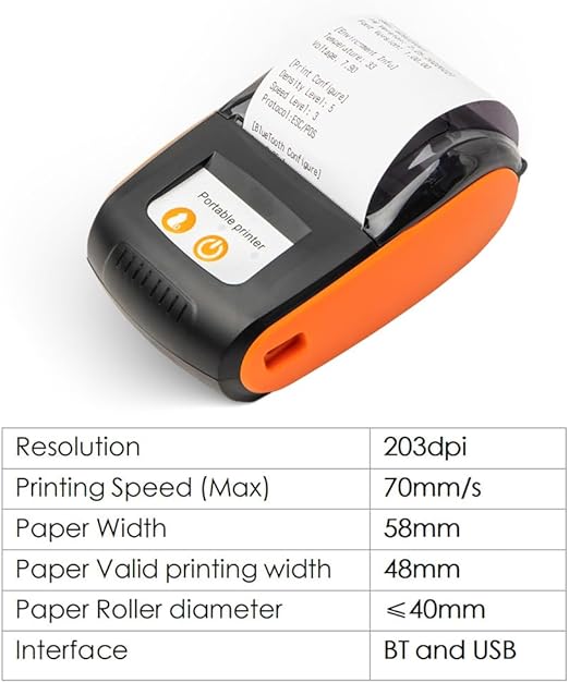 [Yüksek Kaliteli Baskı] – 70 mm/sn maksimum baskı hızı ve 203 dpi çözünürlük ile bu yazıcı net ve hızlı baskı sağlar. 58 mm termal kağıt kullanır ve 48 mm geçerli baskı genişliği sağlar. Fiş, fiş sonrası, restoran siparişi, barkodlar, QR kodu, Logolar, Metin vb. yazdırmak için kullanılabilir.