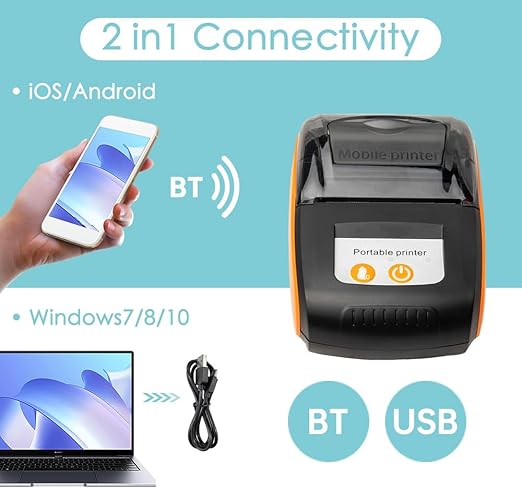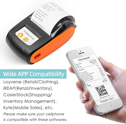 [Çok Yönlü Bağlantı] – MP210 58 mm termal fiş yazıcısı hem BT hem de USB bağlantılarını destekler ve bu da onu Android, iOS ve Windows sistemleriyle uyumlu hale getirir. Loyverse, iREAP, CasierStock ve Kyte gibi çeşitli uygulamalarla sorunsuz bir şekilde çalışmak üzere tasarlanmıştır.
