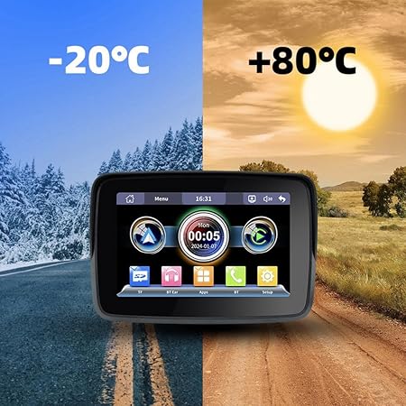 Taşınabilir GPS Navigasyon Ekranlı Su Geçirmez Motosiklet Ekranı Android Carplay Kablosuz 5 İnç Motosiklet için