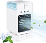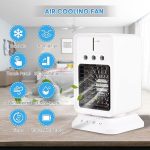 Mini Buharlı Hava Soğutucu, Taşınabilir Portatif Klima, Mobil Sulu Klima, 3 Rüzgar Hızı, 3 Sis Modu, Buzlu Vantilatör 5 Sprey Delikli ile Renkli LED Işıklı Beyaz Renk – HR025 (Beyaz)