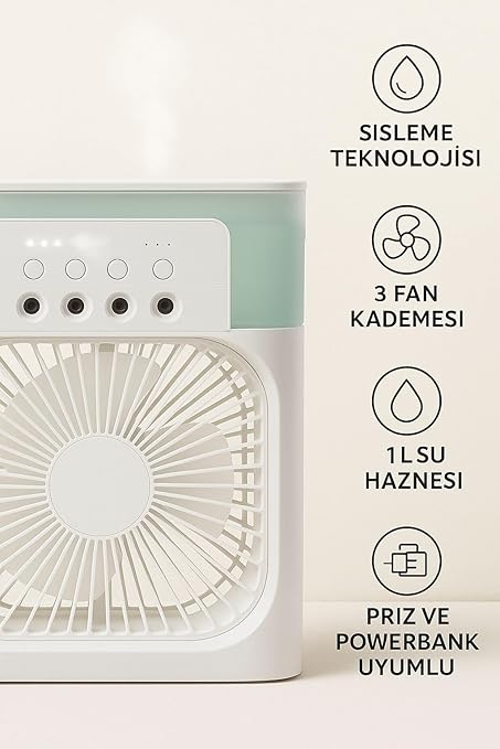 Masaüstü Vantilatör Şarjlı Vantilatör Yükselebilen Fan Soğutucu Fan Klima Serinletici 3 Kademeli Hız Ayarı Asorti Renk