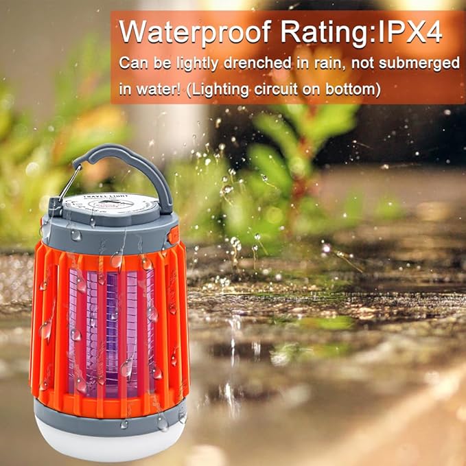 【IPX4 Su Geçirmez】- Genel su geçirmezlik derecesi, sivrisinek lambası sadece doğrudan musluk suyuyla yıkanamaz (Not: yıkarken lütfen şarj portunun lastik pedini sıkıca kapatın). Ayrıca yağmurlu, güneşli veya karlı olsun, açık hava kampı, yürüyüş ve ızgara için mükemmel olan çeşitli hava koşullarında da kullanılabilir.