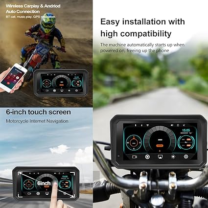 Hepsi Bir Arada Navigasyon Merkezi: GPS izleme, ses kontrolü (sadece carplay için), medya oynatma ve sürücü güvenlik özelliklerini (TPMS/çift kayıt) tek bir sağlam motosiklet kokpit sistemi.
