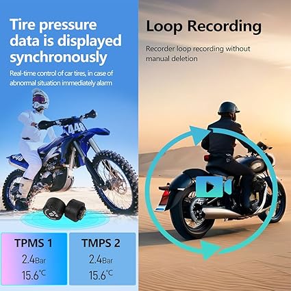 6″ Dokunmatik Ekran Bölünmüş Ekran ve Çift 1080P Kayıt: Bu motosiklet kayıt cihazı, tam sürüş güvenliği için kristal netliğinde 1080P çift lensler içeren bölünmüş ekran teknolojisiyle aynı anda hem ön hem de arka görünümleri izler.