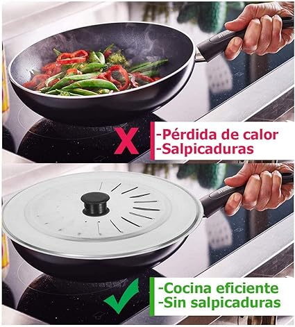 【Ürün Özellikleri】→ Havalandırma delikli ve vidalı plastik saplı metalik kapak. Ø 34 cm. 220 ºC’ye kadar ısıya dayanıklı. Fırına dayanıklı (lütfen düğmeyi açık halde alüminyum folyo ile kapatın).