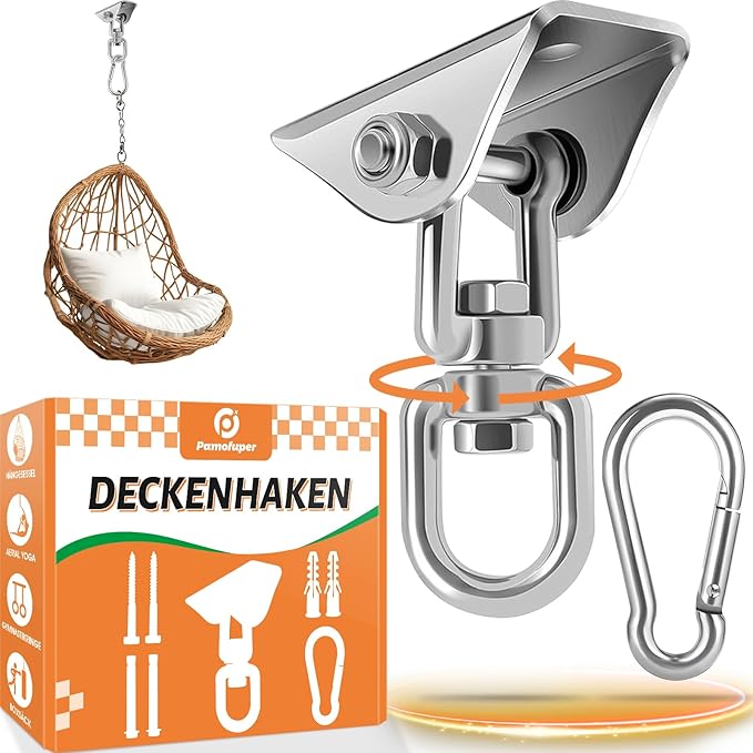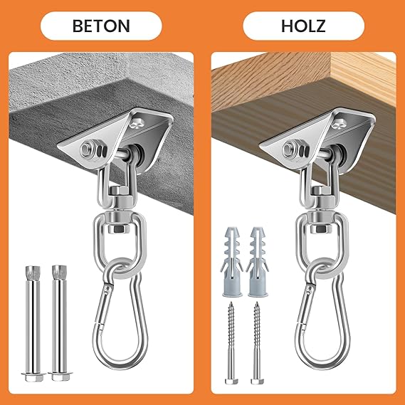 Tavan kancası, 360° döndürülebilir, paslanmaz çelik hamak kancası, asma koltuk, boks torbası, jimnastik halkaları, Aerial Yoga için tavan askısı
