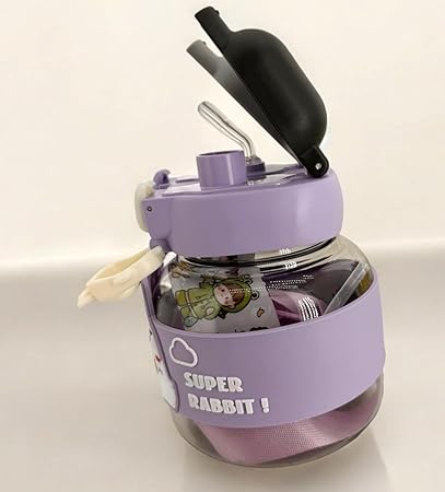 Tavşan Su Matarası Boyun Askılı Suluk Renkli Çizgi Film ve Desenli Karakterler Çocuklara Özel Taşıması Kolay Okulda Piknikde Kullanıma Uygun 1 Litre CRK3 (Mor)