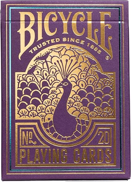 Bicycle Peacock Oyun Kartları, tavuskuşundan ilham alan çarpıcı desenlere ve her türlü kart oyununa veya kart gösterisine zarafet katan mor renklere sahiptir.