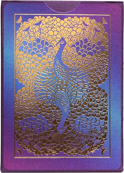 Kart sırtlarına ve yüzlerine muhteşem bir parıltı katan yenilikçi bir soğuk folyo içeren Bicycle Peacock Oyun Kartları, büyüleyici bir dokunuş,üst düzey bir görünüm ve his verir