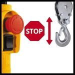 Güvenli kullanım: Halatlı vinç, iş yerinde daha fazla güvenlik için acil durdurmalı bir çalıştırma anahtarı ile donatılmıştır. Otomatik fren, yükü her konumda sabitler.