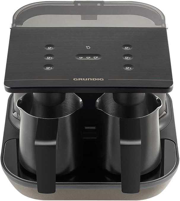 Paslanmaz çelik cezveleri ile tek seferde eşit miktarda köpüklü 6 fincan kahve hazırlamanıza ve 3 farklı fincan boyutu seçmenize olanak tanır