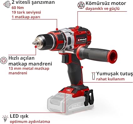 Ergonomik tasarım ve yumuşak kaplamalı tutamak ile kolay çalışma, ilave tutamak sayesinde rahat kullanım, LED aydınlatma