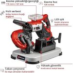 Kullanım – 120 m/dak kesme hızı, 115 mm kesme yüksekliği ve 127 mm kesme genişliği ile bu akülü şerit testere çeşitli malzemeleri kesebilir.