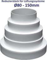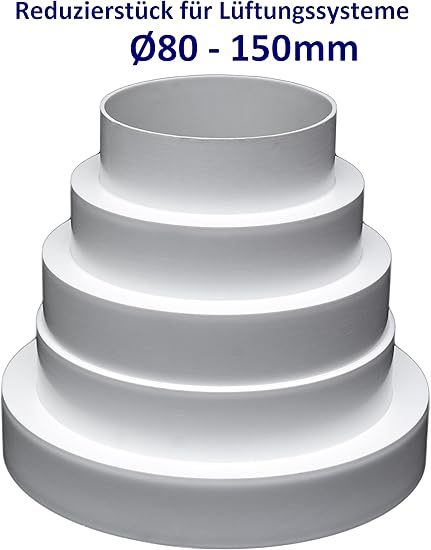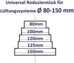 TECHNIK Universal hava çıkış havalandırma sistemi için Ø 80 – 150 mm. Reduzierverbinder boru Ø 80 100 120 125 150 mm. geçiş havalandırma yuvarlak boru havalandırma Lueftungskanal. Rdrc azaltılması.