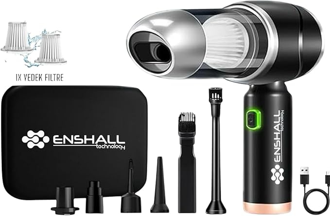 Technology Yeni Araç İçi Mini Şarjlı Süpürge 12000 PA Ev Ofis Araç Temizliği Fırçasız Motor 3IN1 Güçlü Emiş