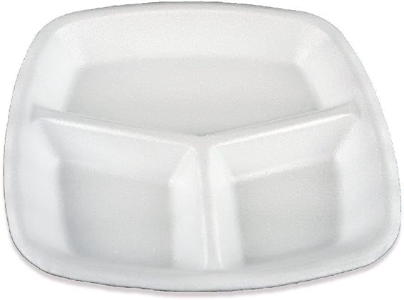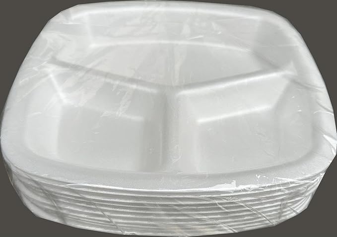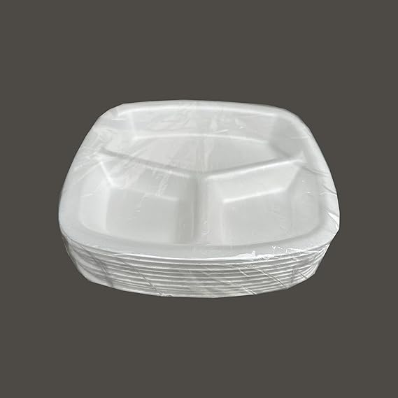 Tek Kullanımlık Köpük 3 Bölmeli Tabldot Köpük Tabak – 23.5×25 Cm. – 10 Adetlik 1 Paket