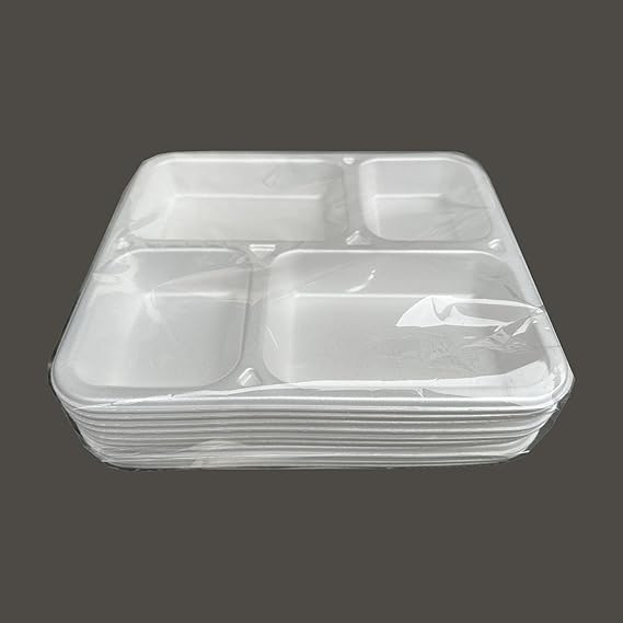 Tek Kullanımlık Köpük 4 Bölmeli Tabldot Köpük Tabak – 26.5×30 Cm. – 10 Adetlik 3 Paket