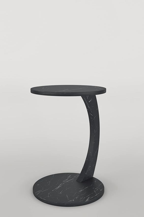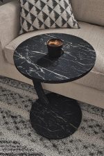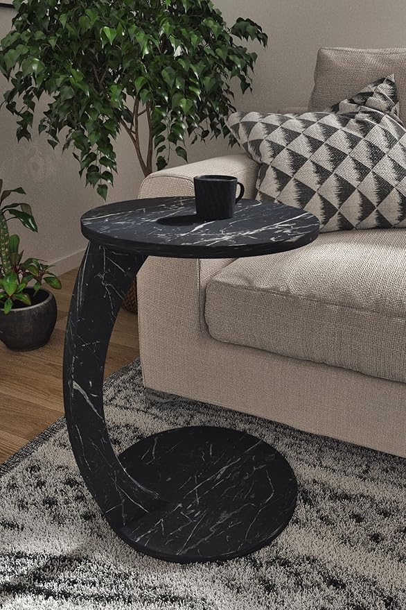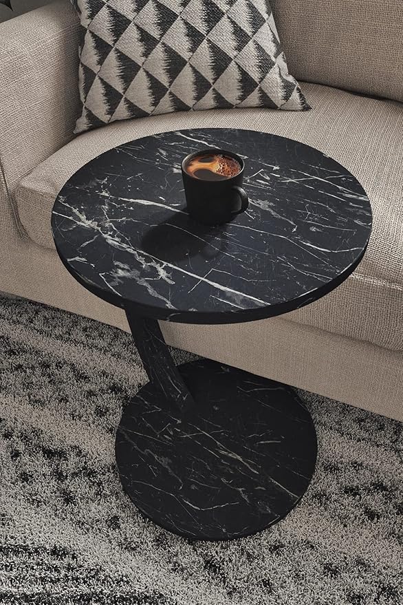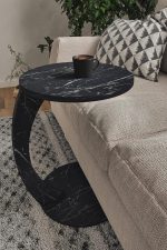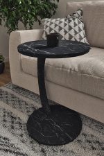 Tekerlekli C Sehpa Koltuk Sehpası Yan Sehpa Zigon Sehpa Servis Sehpası – Siyah Mermer Desen