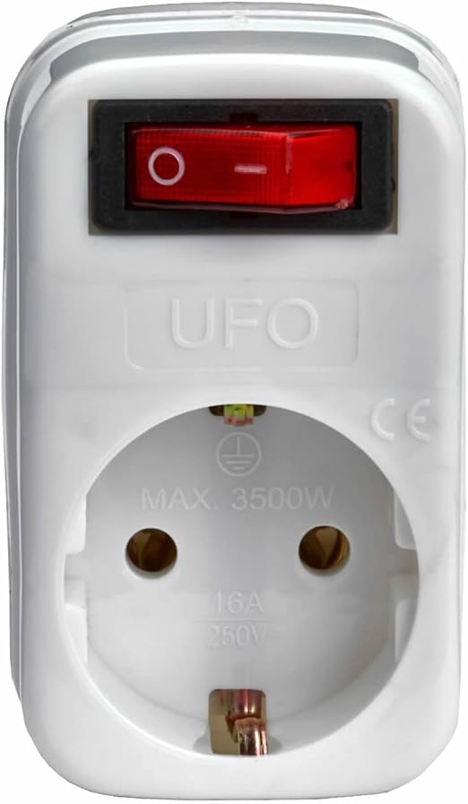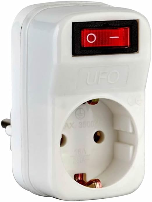 UFO Tekli Akım Korumalı Anahtarlı Priz 16 amper 250 Volt gerilim taşır, Maksimum yük 3500 Watt. Aşırı Yük Koruması, Akım Sensörü, Beyaz renk