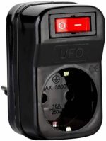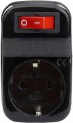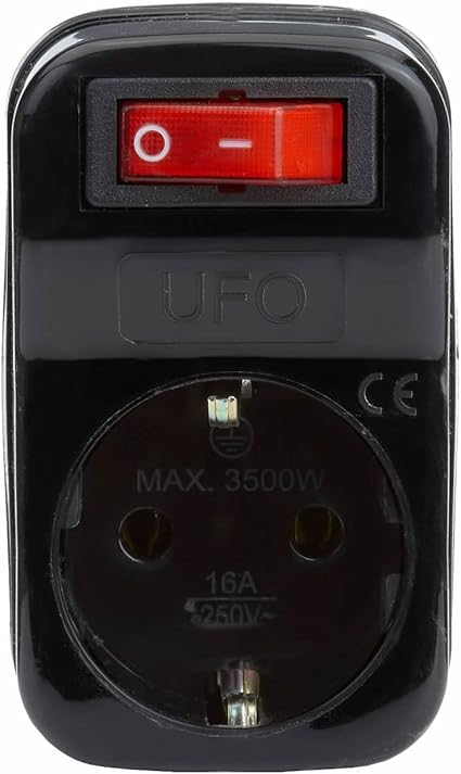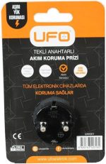 UFO Tekli Akım Korumalı Anahtarlı Priz 16 amper 250 Volt gerilim taşır, Maksimum yük 3500 Watt. Aşırı Yük Koruması, Akım Sensörü, Siyah renk