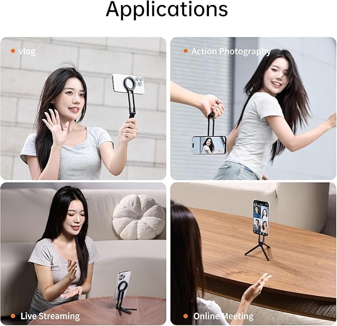 Telefon Tripod Standı Samsung için – Alüminyum Maglock Akıllı Telefon Mini Tripod Cep Telefonu Standı Çift Taraflı Mıknatıs Hızlı Montaj iPhone 17 16 15 14 13 12 Magsafe ile Uyumlu, Siyah
