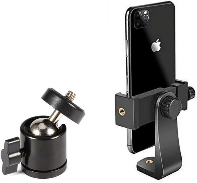 Telefon Tripod Tutucu Başlık + Tripod 90° Yönlendirme Aparatı 360 Derece Dönebilen Başlık Tüm Tripodlara Uyumlu Metal Mafsal Aparatı P231 (P231 telefon tutucu + Mafsal)
