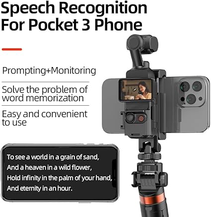 Hem cep telefonu genişletme braketi hem de Pocket 3 kılıfı, taşınabilir teleprompter, video çekimi artık kelimeleri unutmaktan endişe etmiyor