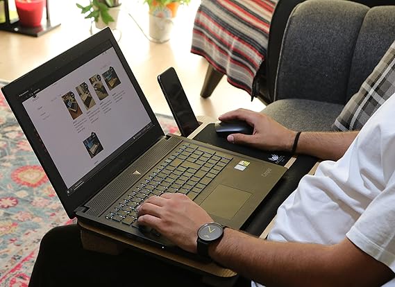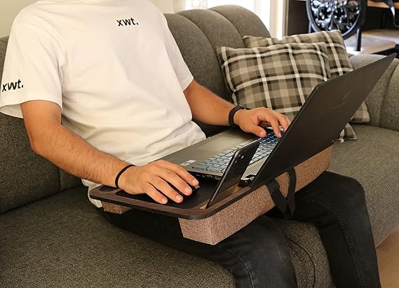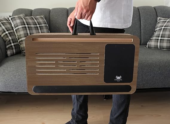 Telefon Ve Tablet Bölmeli Minderli Laptop Sehpası Notebook Bilgisayar Çalışma Masası, Antik Meşe