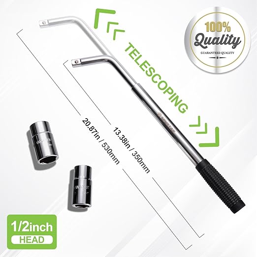 Teleskopik Bijon Somunu Anahtarı Seti 4 Parça | 17/19 mm ve 21/23 mm Uçlu Uzatılabilir Tekerlek Anahtarı – 0,5 inç Sürücü – Sağlam Saklama Torbası dahildir