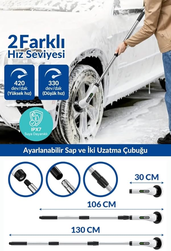 【3 Ayarlanabilir Boyut】: Güçlü döner fırça, ayarlanabilir sap ve iki uzatma çubuğu ile hem yakın hem de uzak alanları kolayca temizlemenizi sağlar. Ergonomik tutma tasarımı konforu artırır ve kaymayı önler. Uzun saplı duş fırçası ile diz, sırt ağrısı veya artrit sorunu olan bireyler bile temizlik görevlerini kolayca tamamlayabilir, yaşam kalitelerini artırır ve rahat bir ev ortamı yaratır.