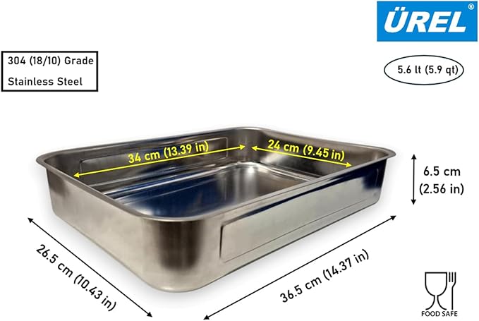 Tepsisi Yoğurt Mayalama Paslanmaz Çelik Çok Amaçlı Dikdörtgen Metal Tava Saklama Kabı (36,5×26,5×6,5 cm, 304 (18/10) Kalite, Makinede Yıkanabilir, Gıdaya Uygun, Kolay Temizlenebilir)