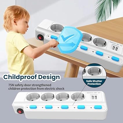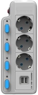 ▶ Rated power: 2500W (Max) ▶ Rated current: 10A ▶ Output port: 3*EU Jack+ 2*USB-A+ ▶ Rated voltage: 100V-250V ▶ USB output: 2 4 (Auto Max) Not fast charging ▶ Material: PC fireproof material ▶ Main switch: yes ▶ Overload protection: yes ▶ Line: 1 ,5 meters