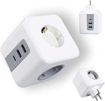 Termal Akım Korumalı 3’lü Duvar Küp Priz, 2xUSB – 1xTYPE-C (Tip C), Çocuk Korumalı, Isıya Dayanıklı Topraklı Üçlü Priz, 2500W 10A