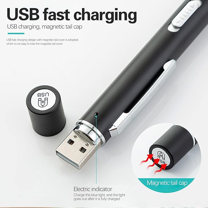 Teşhis Tıbbi Penlight Kalem Torch, USB Şarj Edilebilir Yeniden Kullanılabilir LED Kalem Işık Öğrenci Ölçer ve Cep Klip Ev Açık Doktor Hemşire EMT Acil