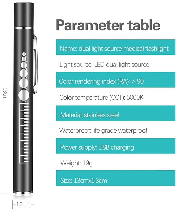 ☀ ŞARJ EDİLEBİLİR TASARIM: Bu teşhis tıbbi penlight, dahili şarj edilebilir pil ile tasarlanmıştır. Şarj kablosu ile donatılmış, istediğiniz zaman mobil güç ve bilgisayar üzerinden şarj edebilirsiniz.